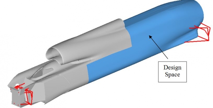 Optimizing a space frame means finding the most efficient pattern for the truss beams (e.g. big longitudinal beams in areas where the structure is mainly loaded in tension/compression and cross members where the shear is predominant) within a confined design space. In the OptiStruct environment this means that the user enters the package space information, design targets and constraints, as well as manufacturing process parameters, and OptiStruct then generates a design proposal that is optimized for the given design targets.